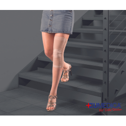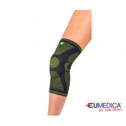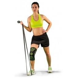 The anti-slip silicone inserts stimulate proprioception. Two oblique stabilizer straps control the joints and hold the knee brace in place. A single circular thigh strap, popliteus muscle completely free.