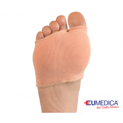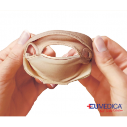 Cuscinetto in morbido oleo-gel polimerico conformato anatomicamente inserito in una pratica fascia in tessuto elasticizzato.